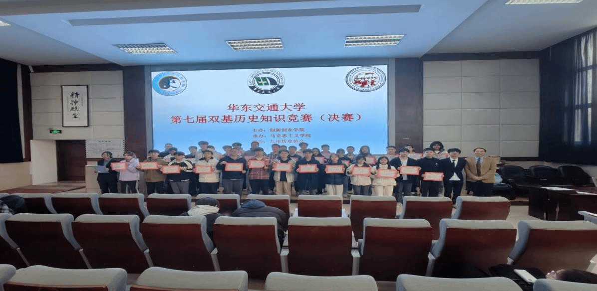 比赛中,选手们扎实的历史知识,精彩的答题,给老师和同学们留下了深刻印象。经过激烈角逐,材料学院代表队获得第一名;人文学院代表队获得第二名;交通学院代表队、国际学院代表队并列第三名。姚卿善老师为获奖同学颁奖,并合影留念。