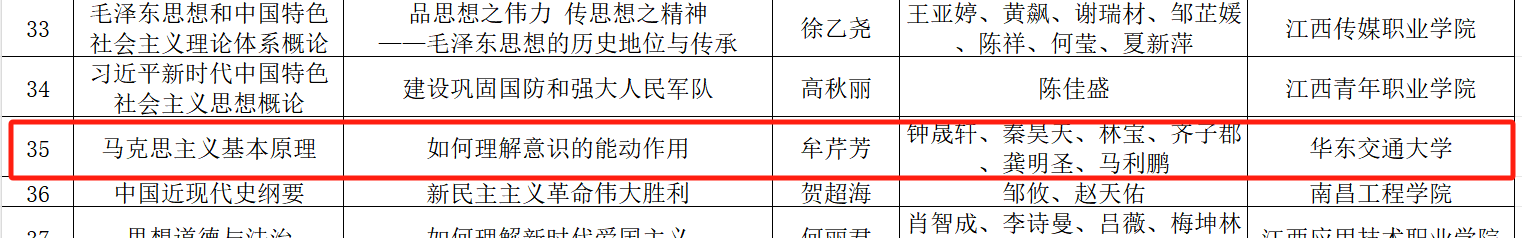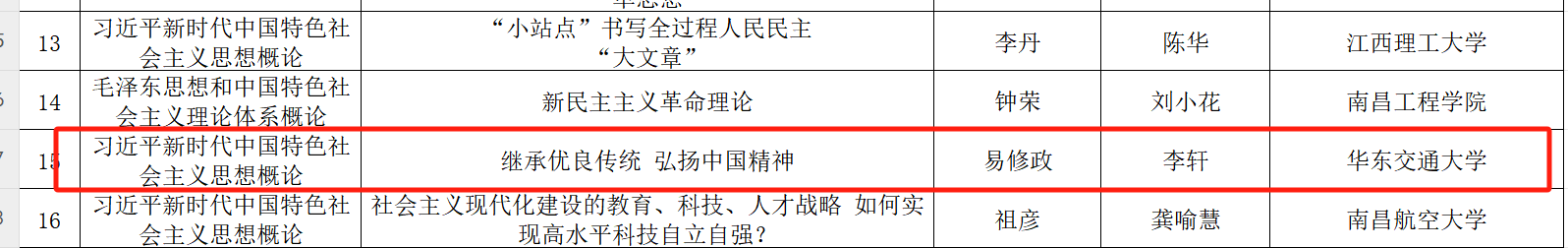近日,江西省教育厅公布了2024年全省“大思政课”建设综合改革试验区改革项目评选结果,伟德bevictor中文版官网入选多个项目:张剑锋院长主持申报的“伟德bevictor中文版官网基层党务实训与纪法教育实践教学基地”获得全省家门口的“大思政课”实践教学基地(第三批);朱王海老师获得全省高校思政课优秀兼职教师(第二批);易修政、李轩老师的“继承优良传统 弘扬中国精神”专题获得全省高校“双师同堂”优质课(第二批);胡许悦老师的“学习法治思想 提升法治素养”专题和牟芹芳老师的“如何理解意识的能动作用”专题获得全省“师生同台”优质课(第二批);宋维毅、陈琛老师的“铸就社会主义文化新辉煌”专题获得全省“专题+艺术”特色思政课(第二批);具体如下: