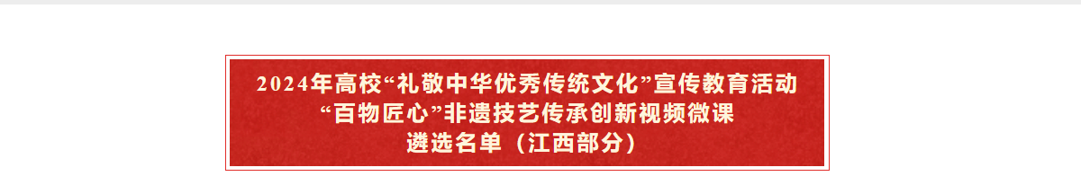 近日,教育部发布《关于2024年高校“礼敬中华优秀传统文化”宣传教育活动结果的公示》,伟德bevictor中文版官网报送的《用好用活“江西红”上好上新“大思政课”》及《山歌越千年 文脉永绵延》两项作品成功入选。